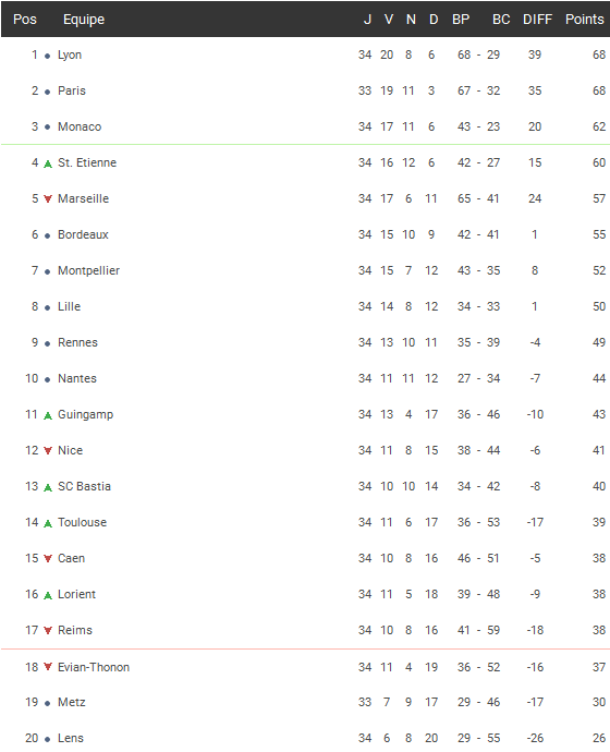 Classement Foot Ligue 1 20142015 Résultat Football Ligue 1 et Ligue 2