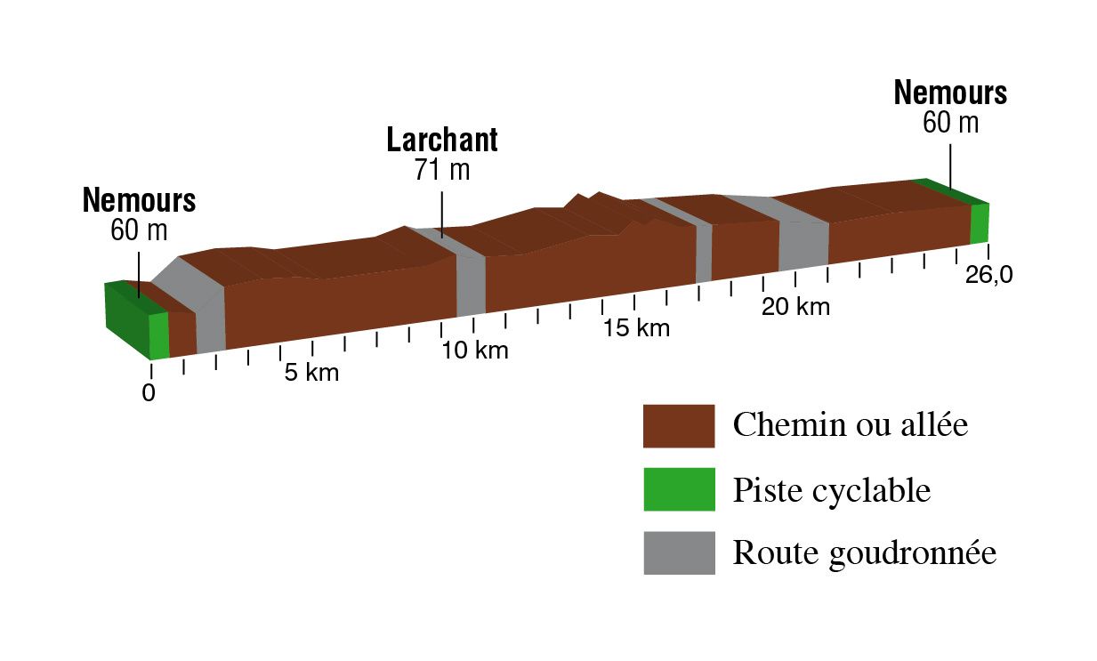 1 km après le hameau de Busseau, prenez à gauche direction Larchant. Vous allez traverser la foret domaniale de la Commanderie. N'hésitez pas à déposer vos vélos pour flaner dans les chaos de blocs de Dame Jouanne, du rocher Maunoury et de l'Eléphant. Le dépaysement est assuré. Ici cohabitent randonneurs et grimpeurs venus du monde.