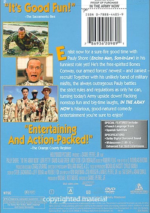 In the Army Now. After getting fired from their jobs at an electronics store, Bones (Pauly Shore) and Jack (Andy Dick) sign up for the U.S. Army Reserve, hoping to make a little money with a minimum of responsibility. What the hapless pals don't realize, however, is that Libya has just invaded Chad, so Bones and Jack are quickly shipped off for.