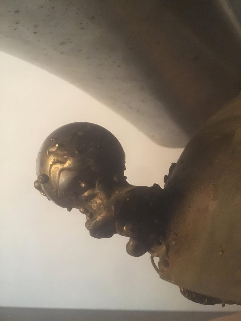 Une sculpture créée par l'ancien international de rugby Jean-Pierre Rives a été installée en centre-ville de Cahors, devant l'hôpital, le 1er août 2023.