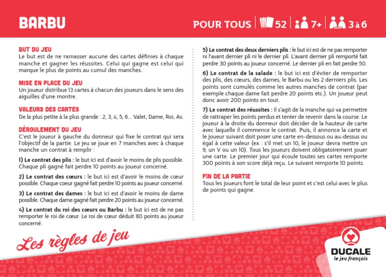 Cartes A Jouer Ducale Regle Jeu Barbu PDF Jeux de hasard Éphémère
