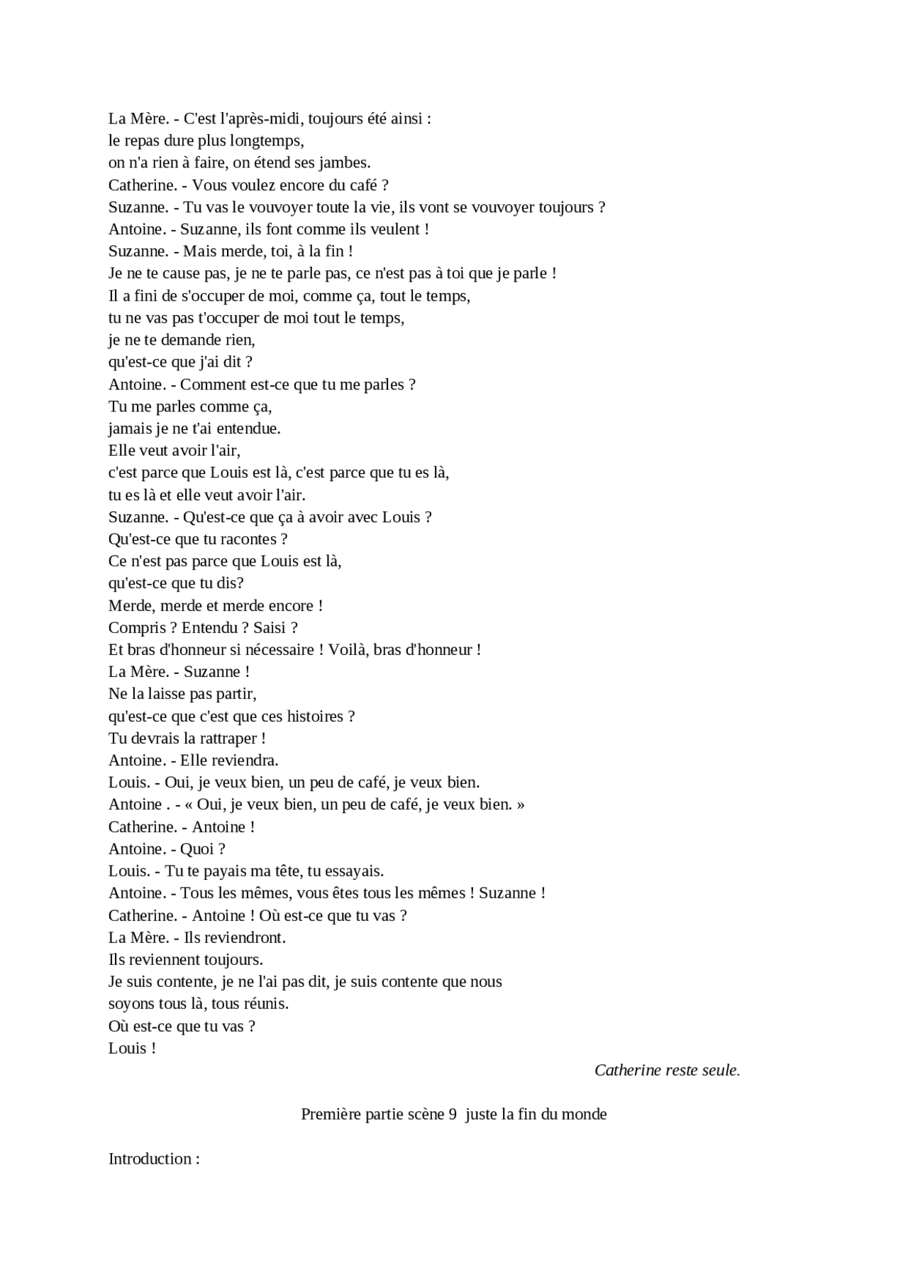 Lecture lineaire premeire partie scène 9 juste la fin du monde Notes Français Docsity