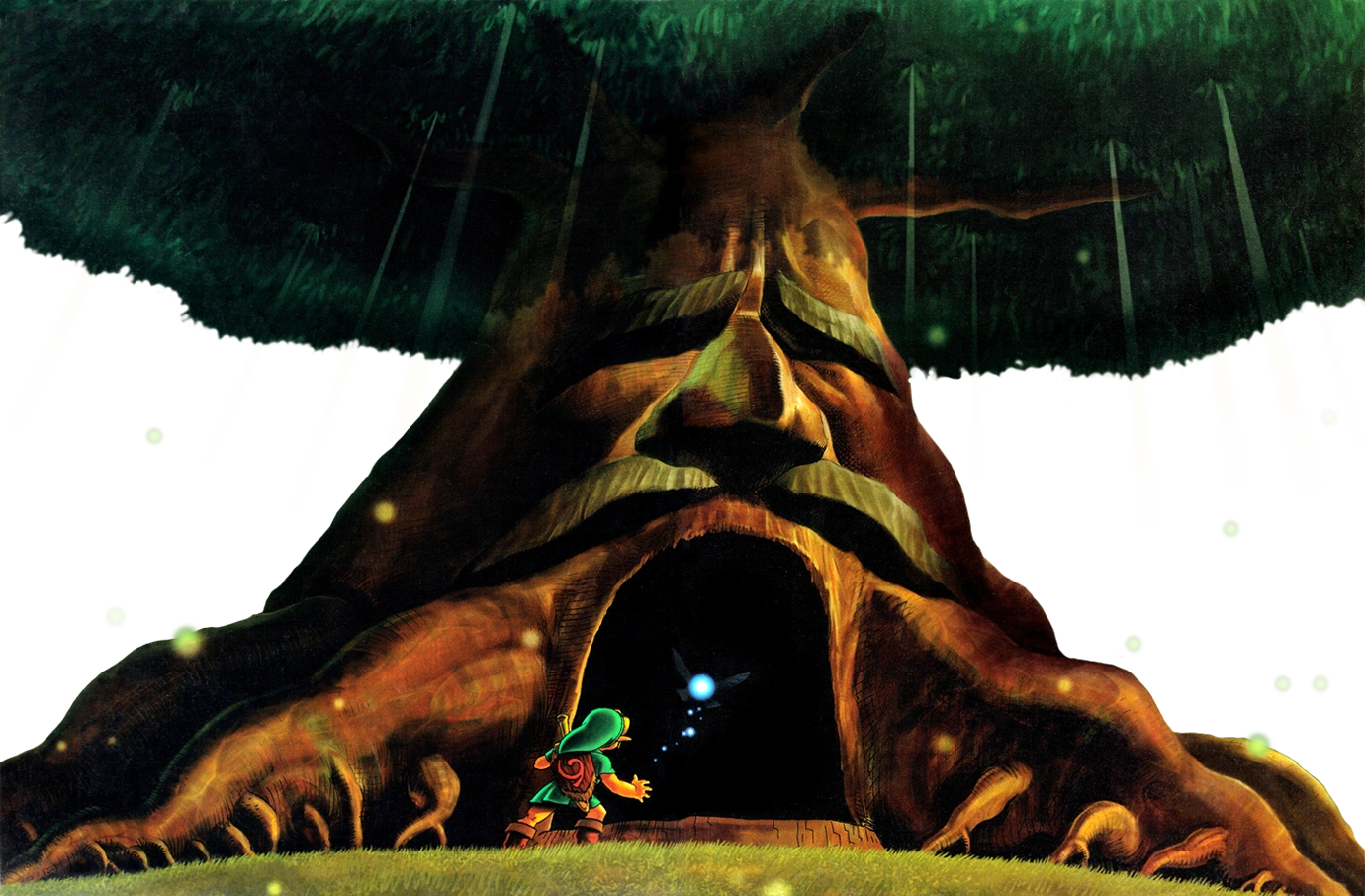 Link entrant dans le Vénérable Arbre Mojo (Artwork Illustrations Ocarina of Time