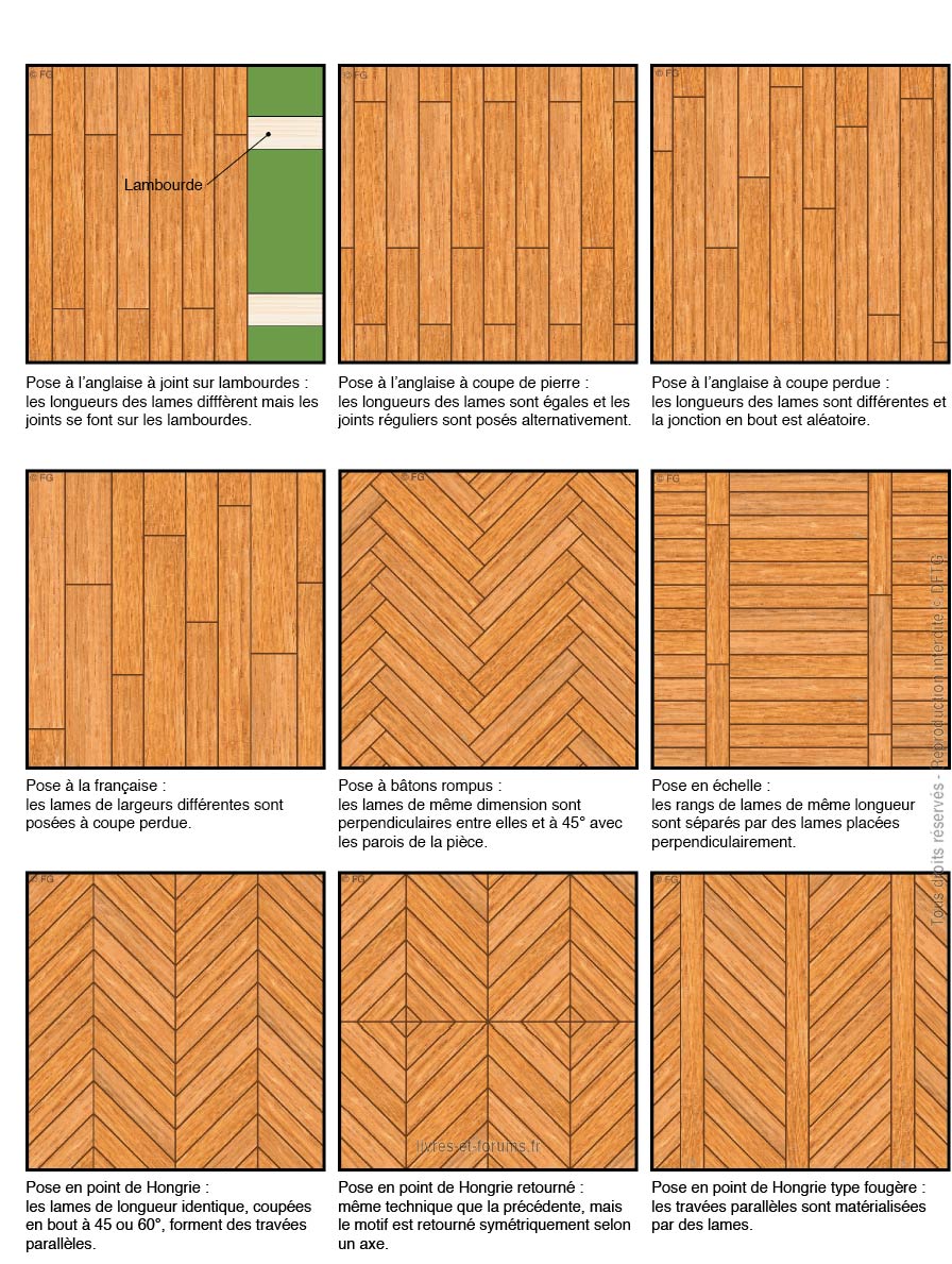 La pose d'un parquet offre de nombreux choix. Le type de lames : bois massif, bois contrecollé ou stratifié. La technique de pose : clouée, collée ou flottante. Et la manière d'agencer les lames. Le type de pose d'un parquet influence profondément l'esthétique du sol et est une affaire de goût. Son choix est aussi guidé par les.