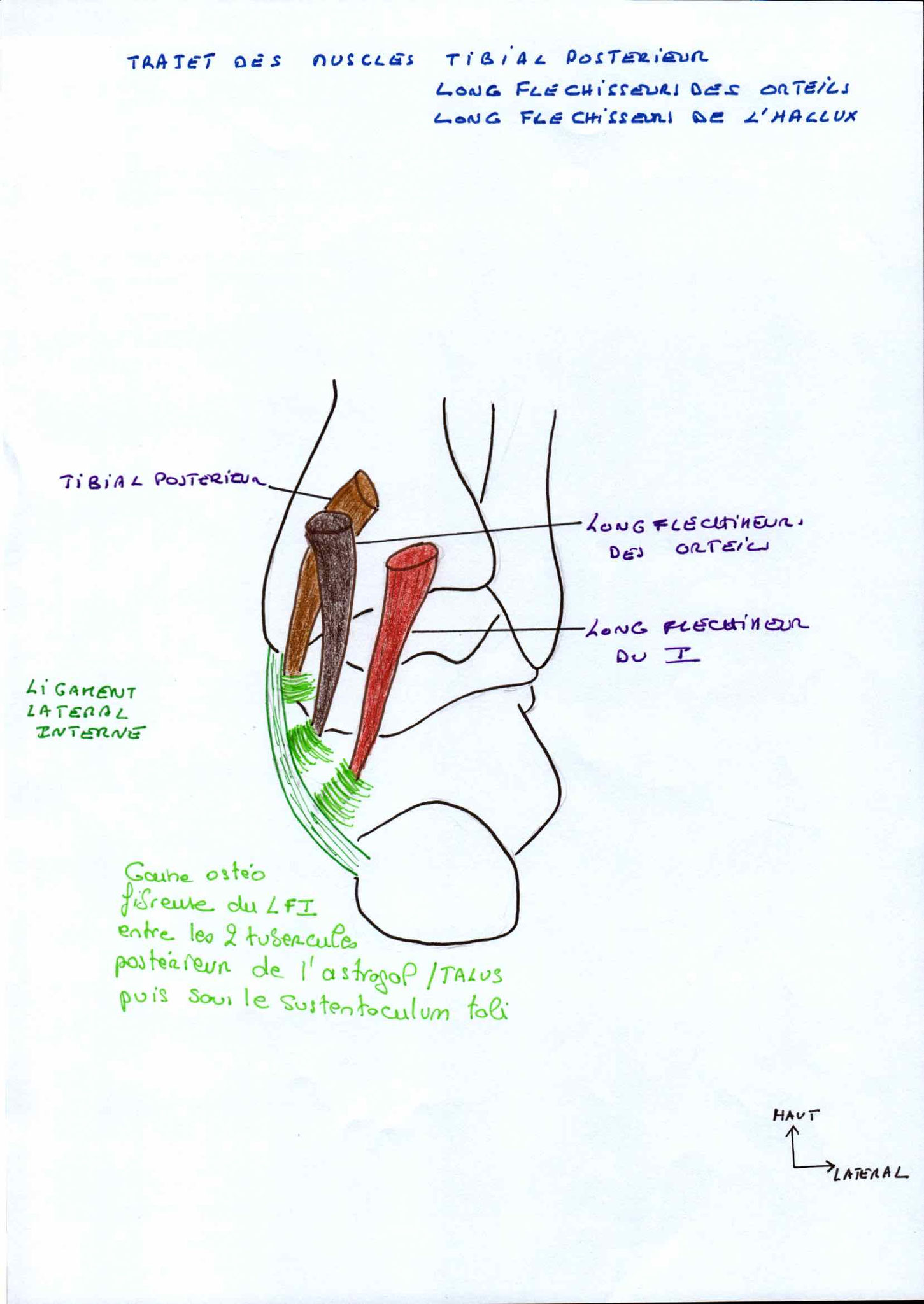 Le long fléchisseur des orteils (LFO) est un muscle de la loge postérieure de la jambe, dont le travail est primordial mais trop souvent oublié.. qui est constitué par le rétinaculum des muscles fléchisseurs. Ensuite, le tendon chemine dans le sillon de l'apex du sustentaculum tali (partie antéro-supérieure du canal calcanéen). Il.