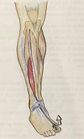 Le muscle long fléchisseur de l'hallux est le muscle le plus gros et le plus latéral de la loge postérieure profonde de la jambe. Le muscle descend le long de la fibula pour finalement croiser au niveau de la partie distale du tibia et se trouver du côté médial. (1) Figure 1: Long fléchisseur du gros orteil.