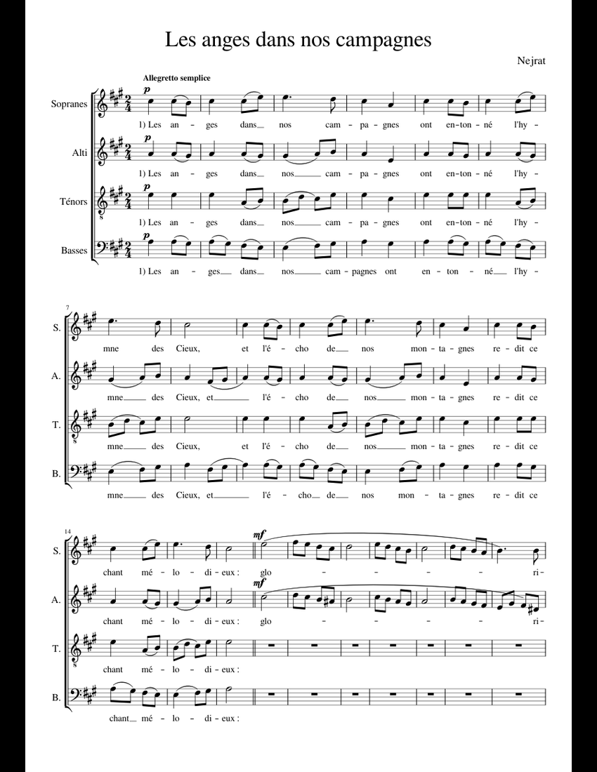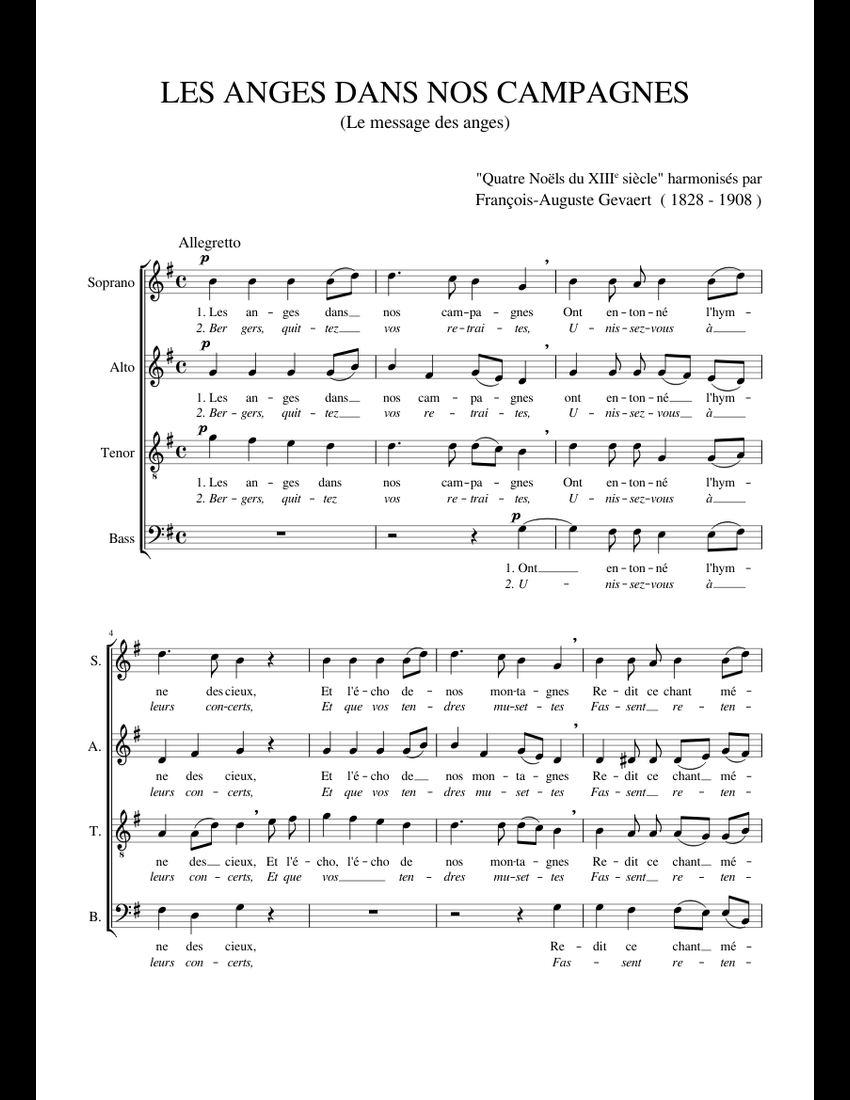 Les anges dans nos campagnes Gevaert (SATB MuseScore) Sheet music for Soprano, Alto, Tenor