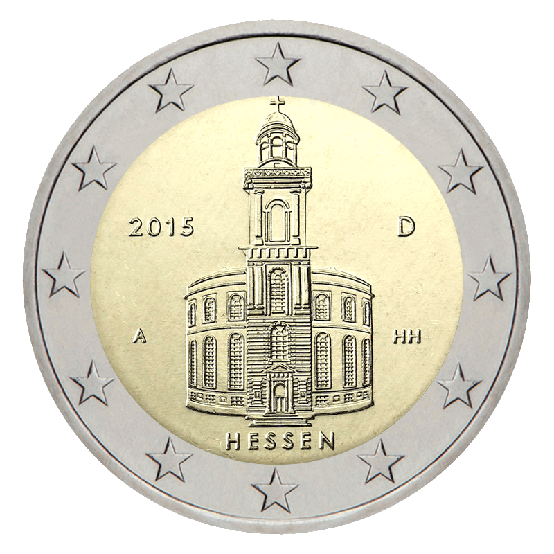 Two Euro 2015 Hessen (Hesse), Coin from Germany - detailed information. The Two Euro coin (€2.00) is a circulating bi-metallic coin made of two alloys: the inner part of nickel brass, the outer part of copper-nickel. Like all the common circulation coins (from 1 cent to €2), the denomination is issued by the separate countries in the.
