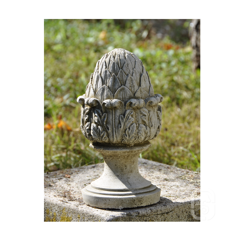 Pomme de pin 40 cm - Pierre. Hairie-Grandon propose des objets décoratifs de fabrication française, et très résistant au gel. Cette pomme de pin en pierre reconstituée, dégage beaucoup de charme grâce à ses belles finitions à la main et décorera avec goût votre extérieur. Caractéristique: - Hauteur : 40 cm