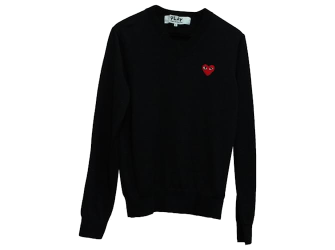 Comme Des Garcons Pull Comme Des Garcon Play Coeur Patch en Coton Noir Laine ref.570927 Joli